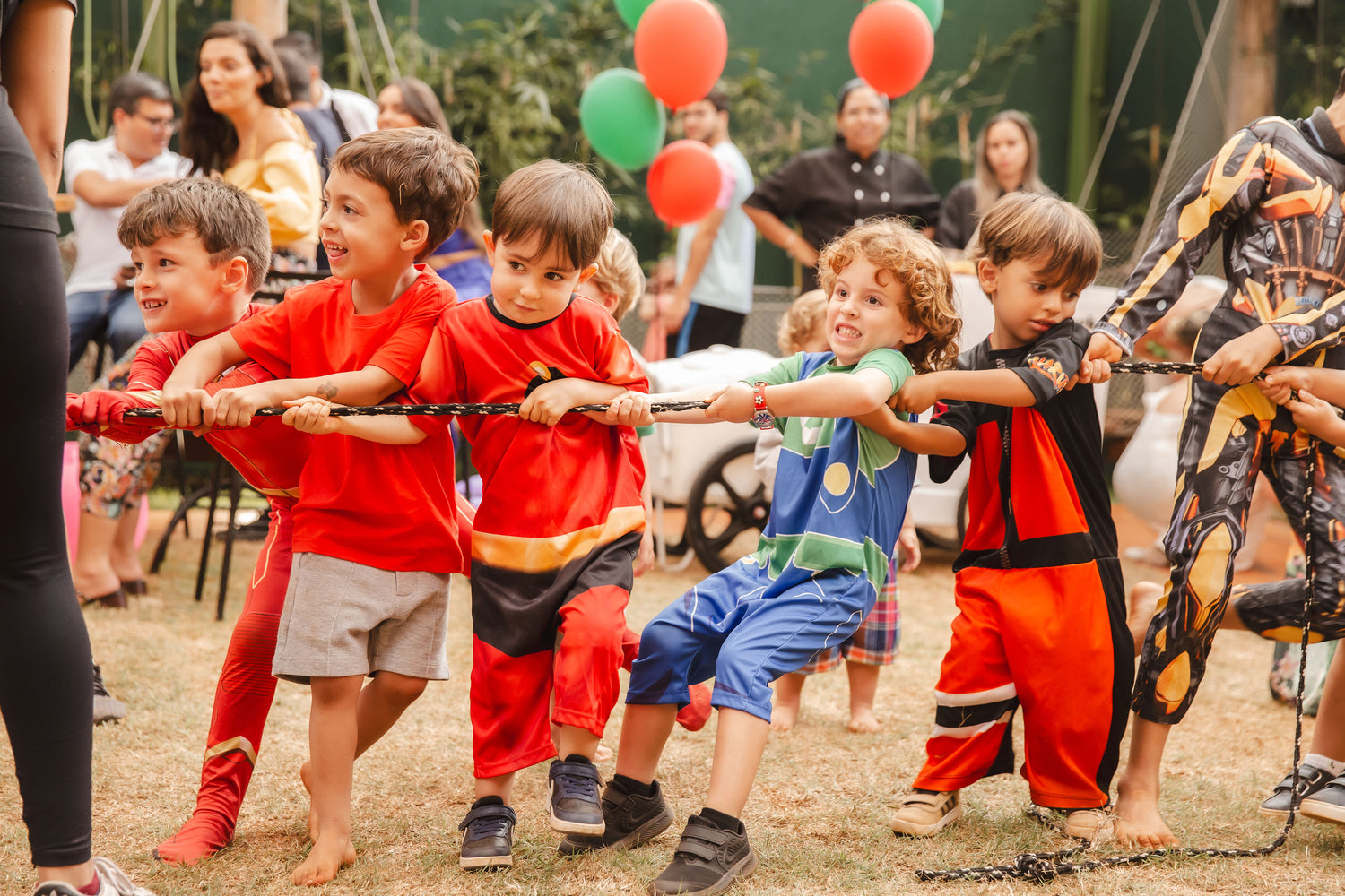 Essa atividade combina diversas formas lúdicas de brincar com muita energia, promovendo o trabalho em equipe, a concentração e a