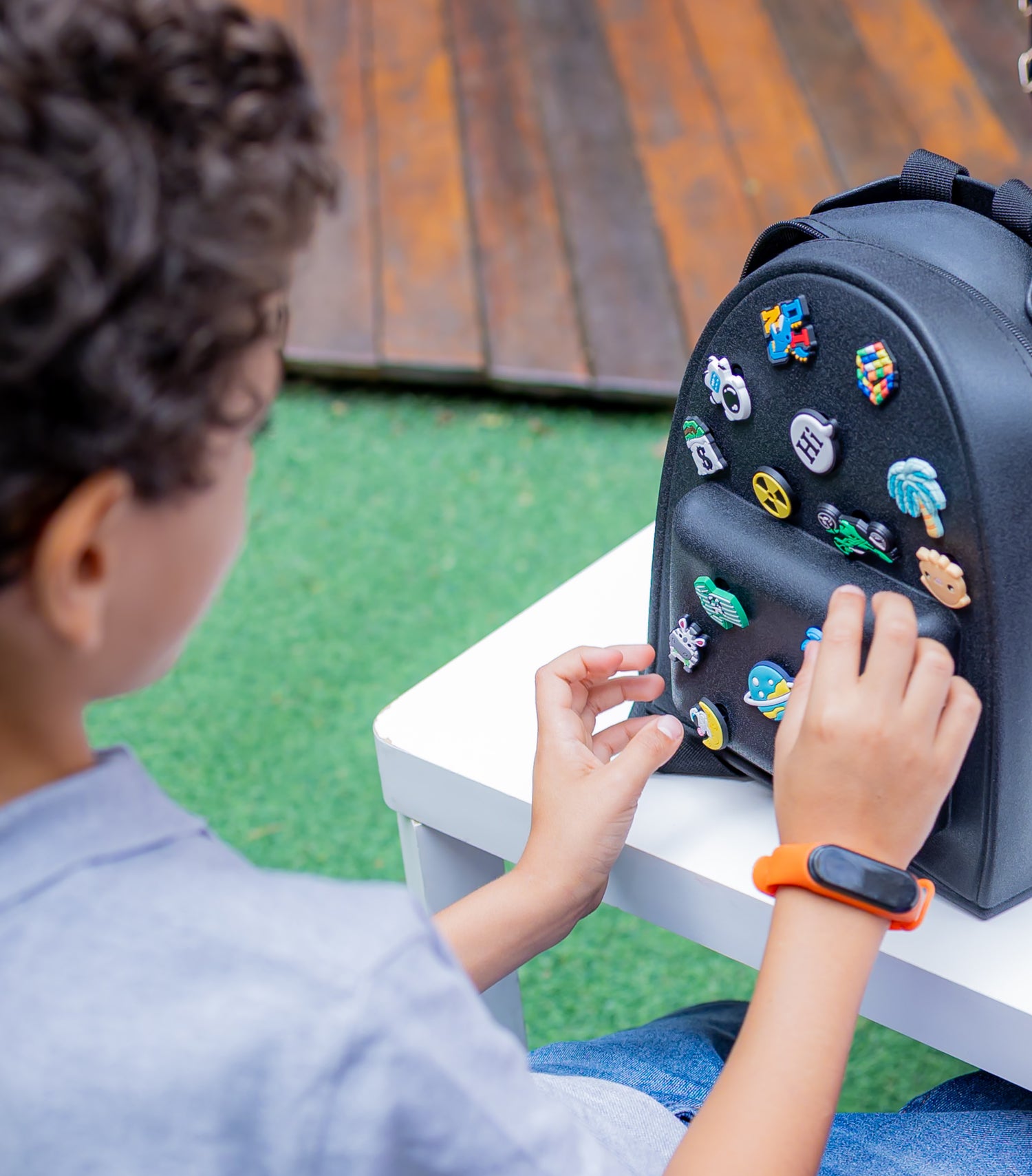 Cada uma recebe uma mochila no estilo Crocs e um mix de pins divertidos, criativos e super coloridos para personalizar do jeitinho que quiser.