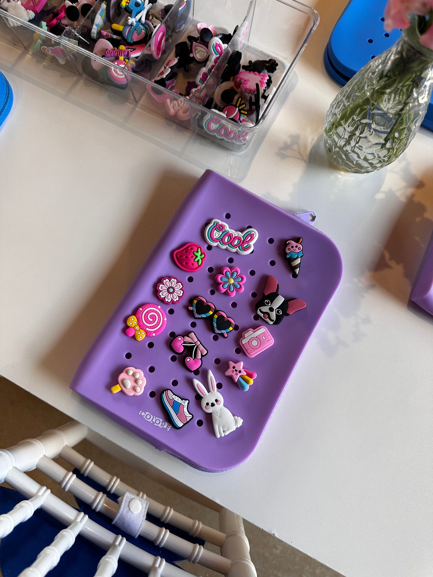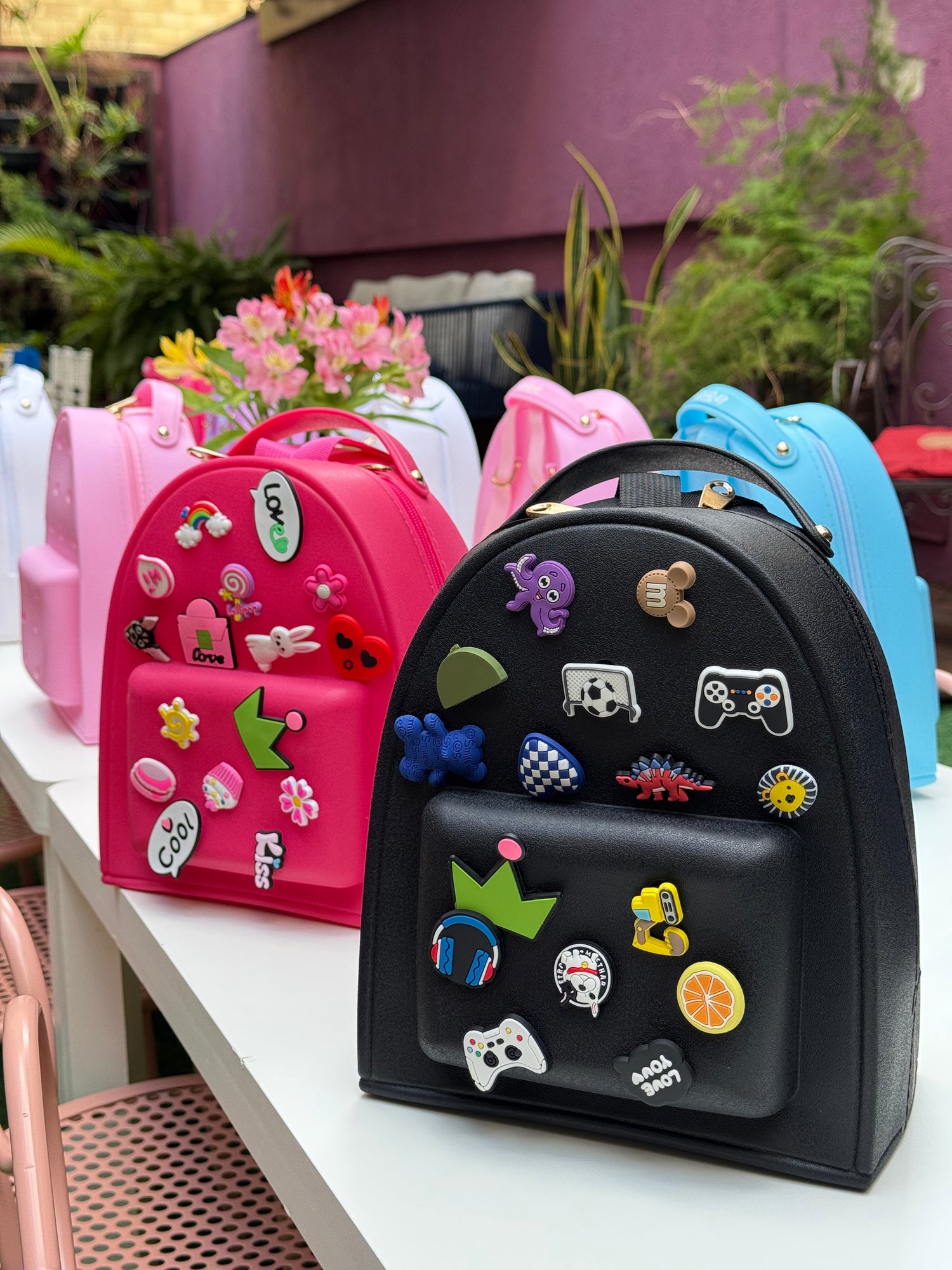 Nessa oficina, a criançada personaliza sua própria mochila Crocs com pins coloridos, deixando tudo com a sua cara.