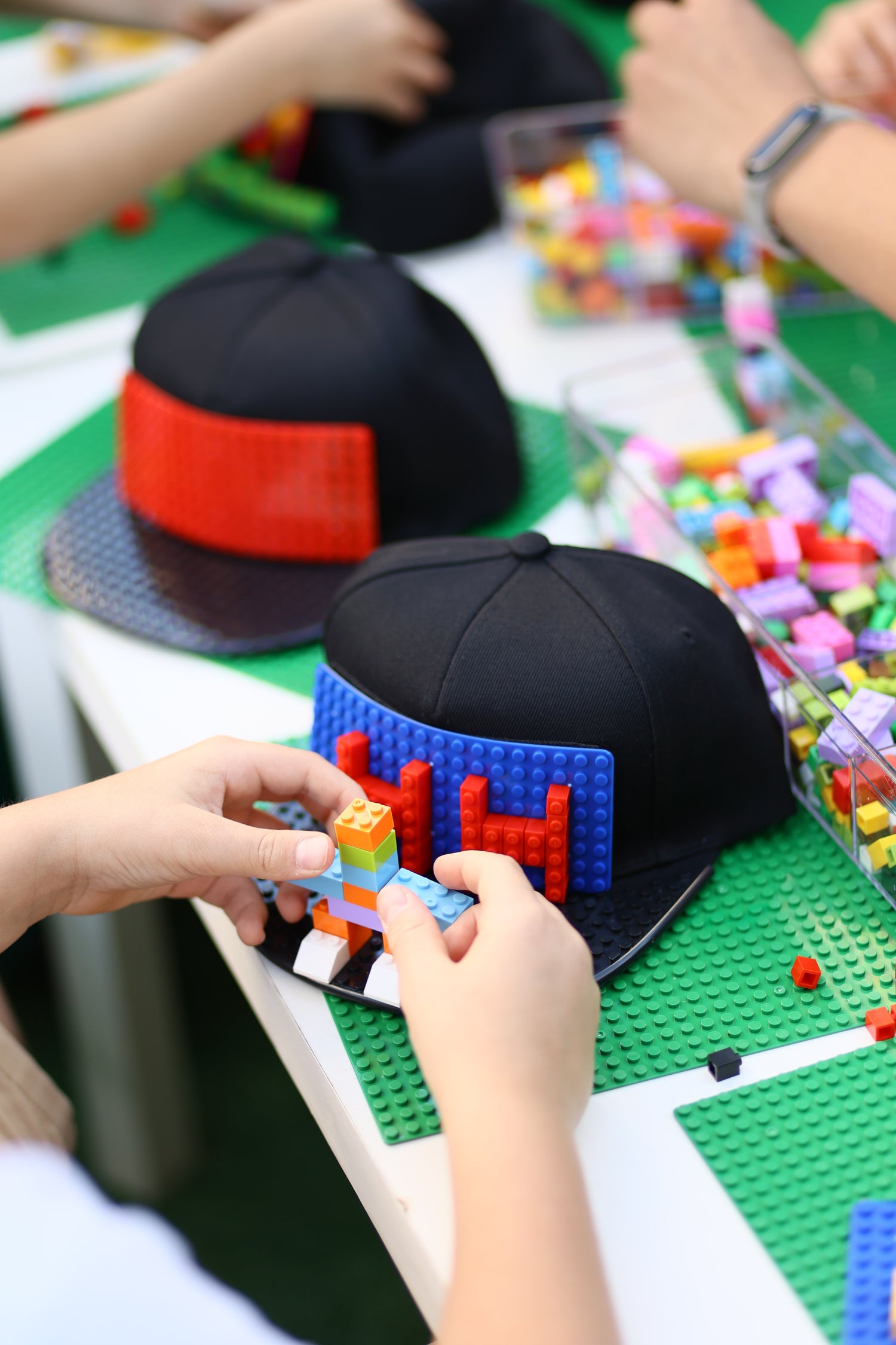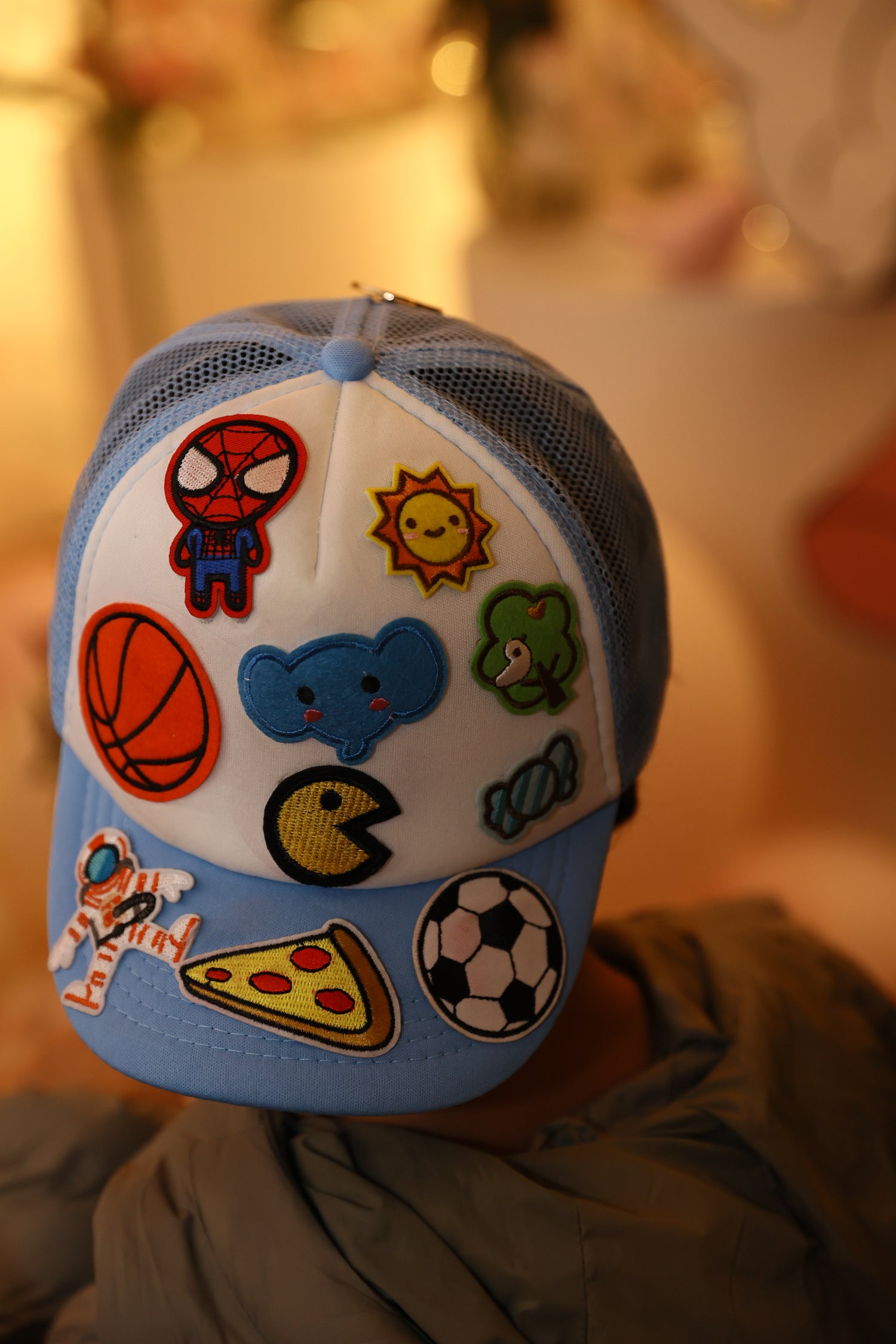 Na oficina de customização de boné as crianças podem criar peças únicas com vários aplique super estilosos e lindos.