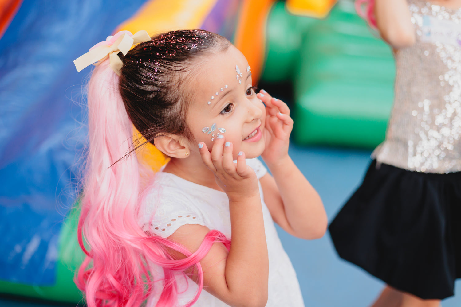 Com muito brilho e cabelos coloridos as meninas se transformam em verdadeiras princesas encantadas!